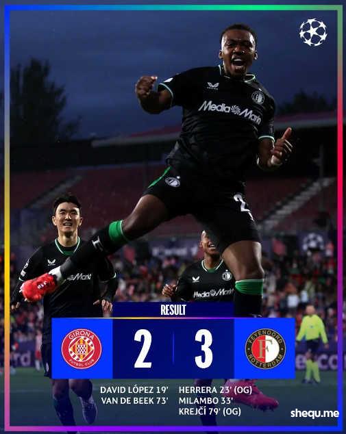 戴维-洛佩斯为赫罗纳先下一城,埃雷拉送乌龙,米兰博为客队反超,范德贝克扳成2-2。第79分钟克雷吉奇再送乌龙,赫罗纳主场2-3输球。