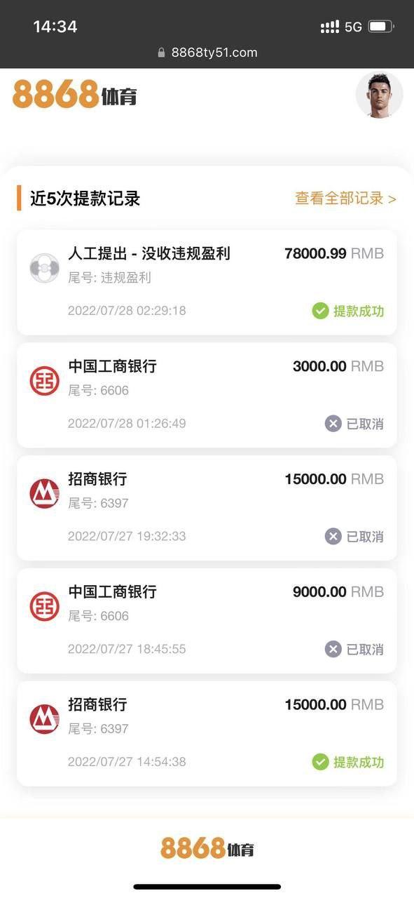 22年被8868体育黑了18w,想不到现在这台子还在开