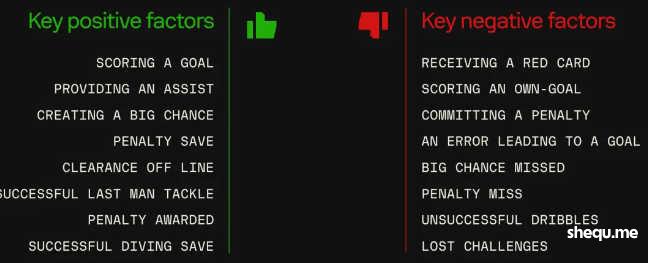 虽然二者都未公开过自己的算法,但是通过媒体报道还是能够看到一些端倪,WhoScored评分只在赛后更新,倾向于整场比赛完结后,将球员的每个动作的数据细节进行彻底分解,并赋予某些重点动作更高的权重(如关键传球、成功拦截、过人等),对于一些负面动作(如失误、犯规、红黄牌)的惩罚也会更加严厉。比如科比-梅努在比赛中吃了一张黄牌,在WS的评价体系里扣分就会更多。而福登多达21次的丢失球权,也许就成为他评分较低的原因。