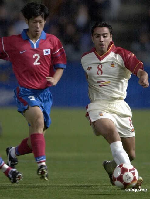 14 Sep 2000: Park Ji Sung #2 for Korea chases down Xavi #8 for Spain during the Mens Prelimanary Olympic Soccer match between Spain and Korea at the Hindmarsh Stadium, Adelaide, Australia. Spain defeated Korea 3-0.