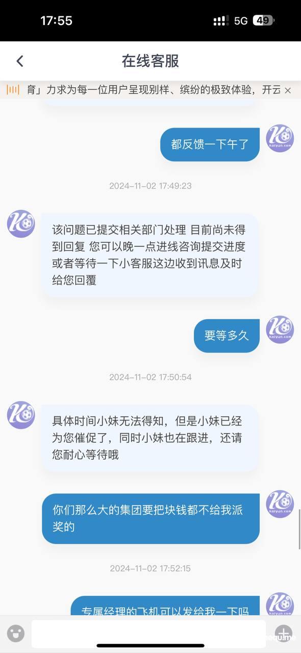 开云集团中奖不派奖,直接下架幸运飞艇,客服一直在敷衍