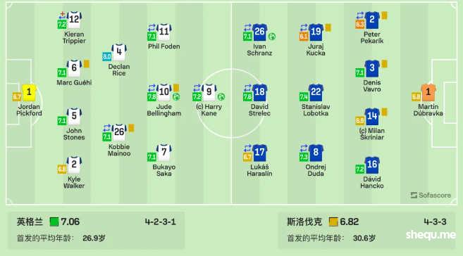 英格兰VS斯洛伐克 SS评分 +|SofaScore